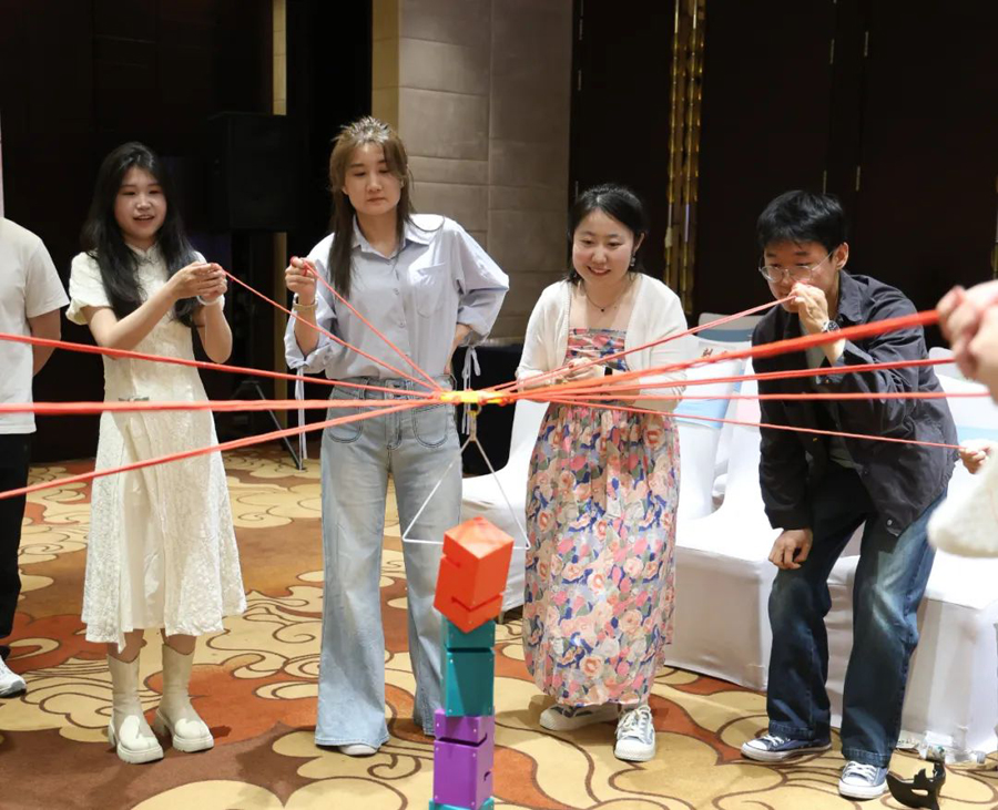在團(tuán)隊(duì)協(xié)作環(huán)節(jié),“神域之舞”“冰火天塔”“弒神試煉”等創(chuàng)意項(xiàng)目相繼展開。15人小隊(duì)通過智慧碰撞搭建“守護(hù)之塔”,男女嘉賓搭檔完成闖關(guān)任務(wù),憑借集卡通貼兌換心動(dòng)禮品,默契配合間愛意悄然生長。
