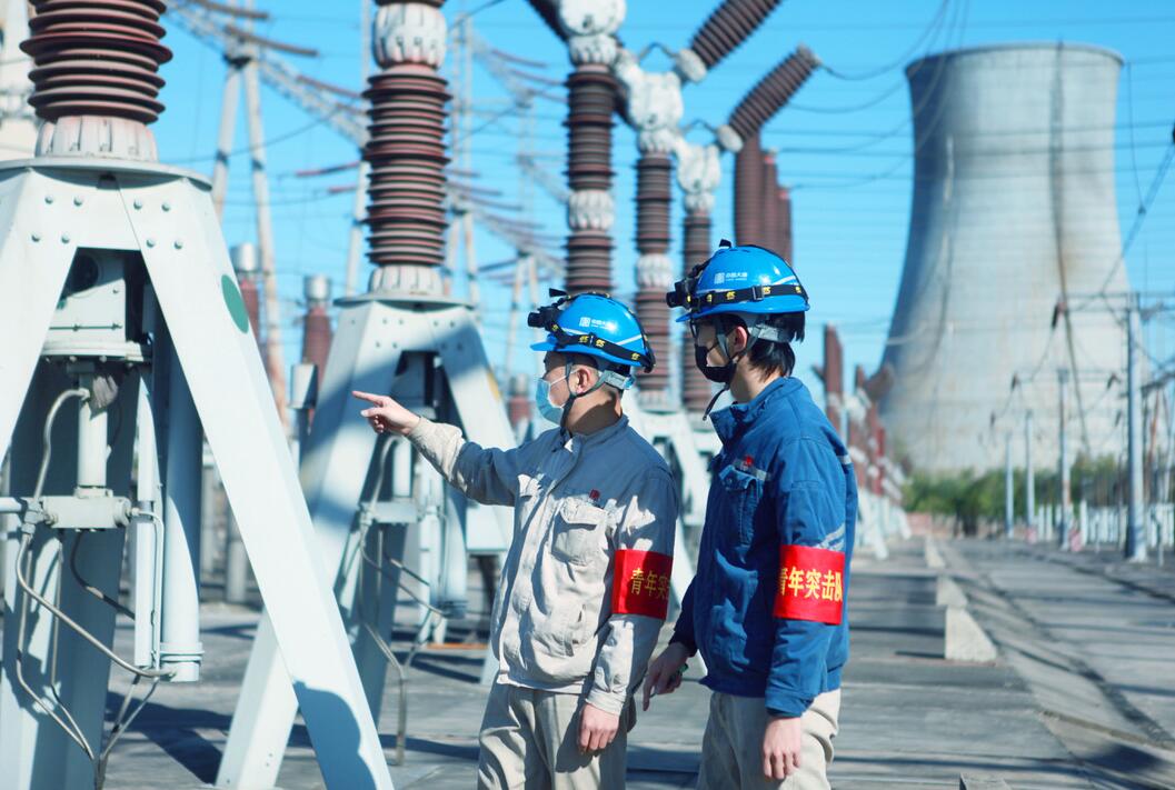 設(shè)備部電控班張慶根和楊家鑫對(duì)升壓站設(shè)備進(jìn)行巡檢